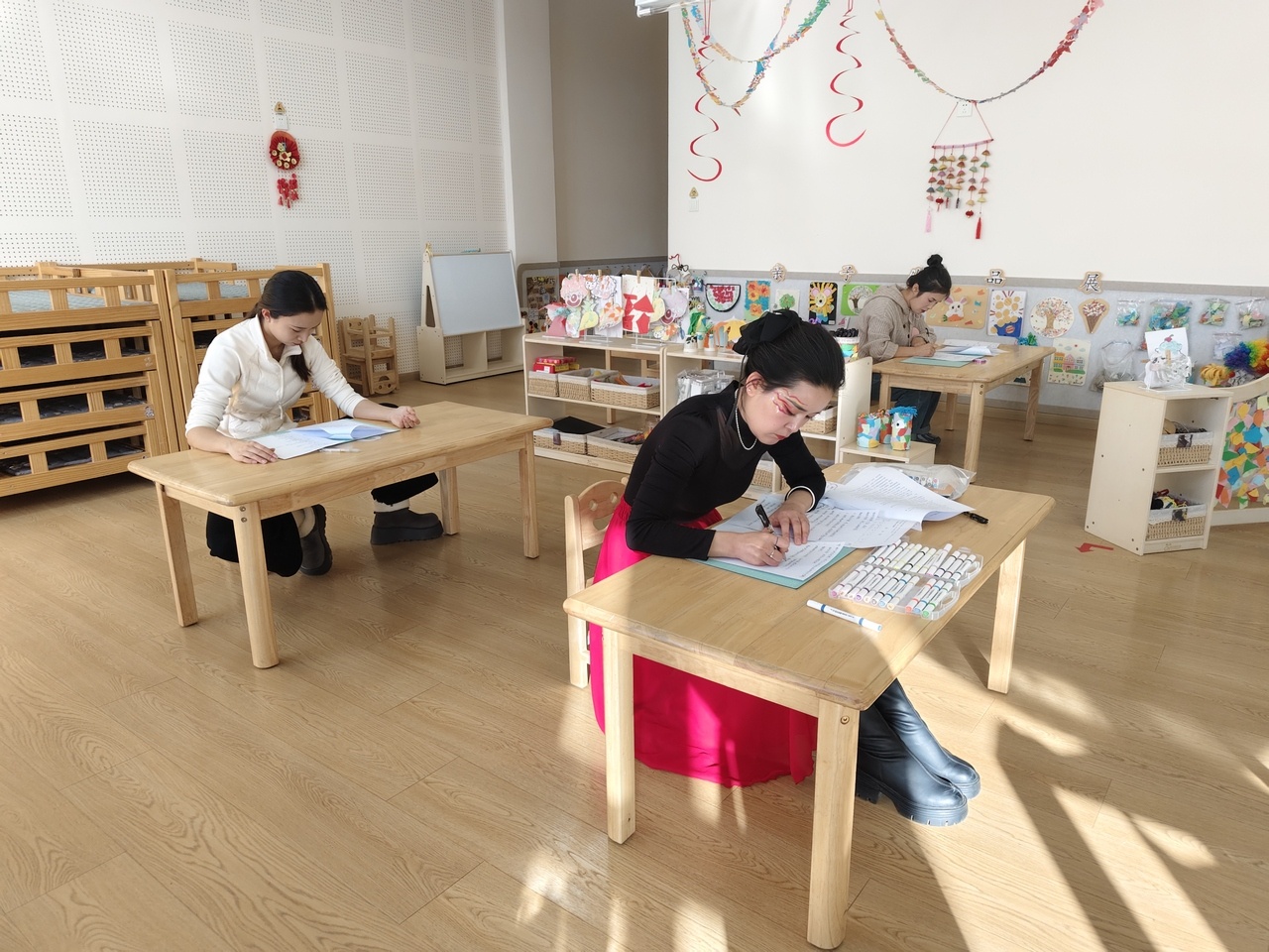 在教学设计环节,教师们紧紧围绕幼儿的年龄特点与发展需求,将教育目标与儿童兴趣有机融合,设计出一个个独具匠心的教学方案,彰显出扎实的课程建构能力。片段教学展示更是精彩纷呈,教师们以生动形象的语言、灵活多变的课堂组织、自然融洽的师幼互动,生动诠释了保教结合的专业理念,展现出他们扎实的教学实践本领。